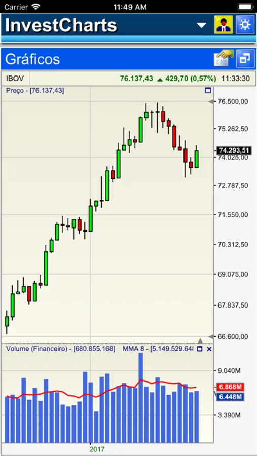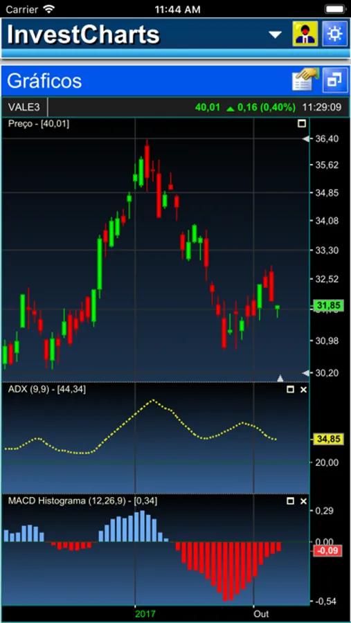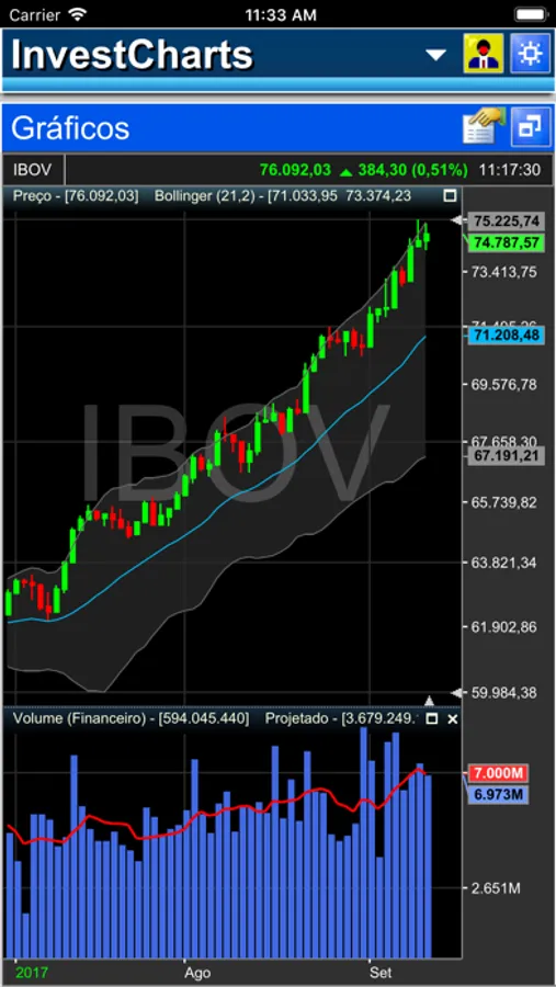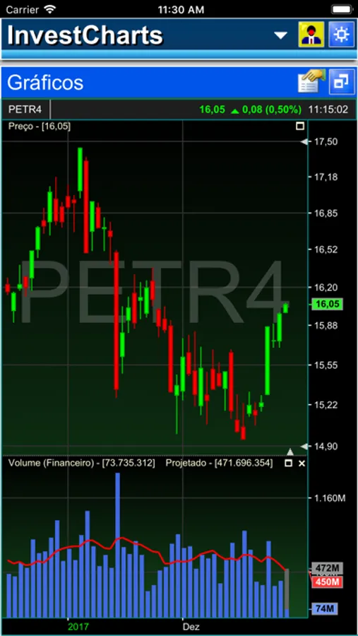 InvestCharts é uma ferramenta de análise técnica para visualização de gráficos e cotações do mercado financeiro brasileiro.
