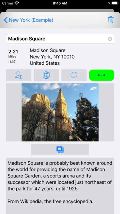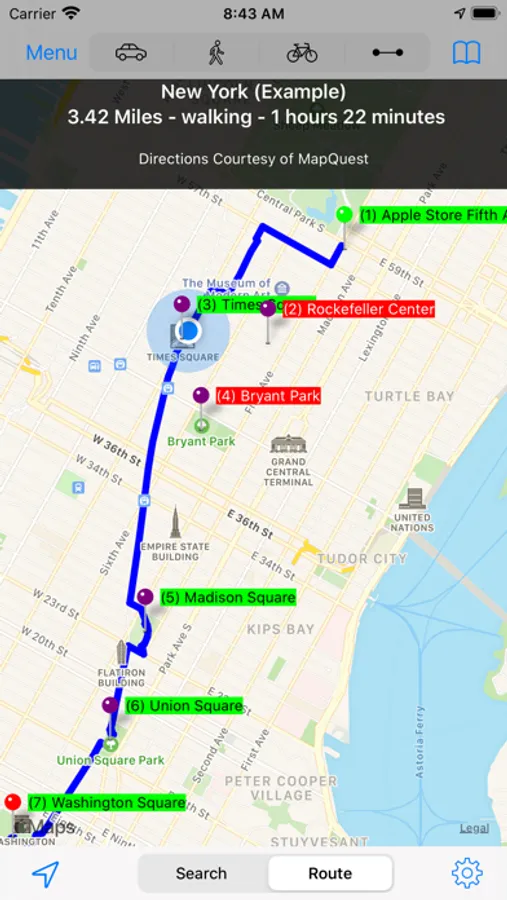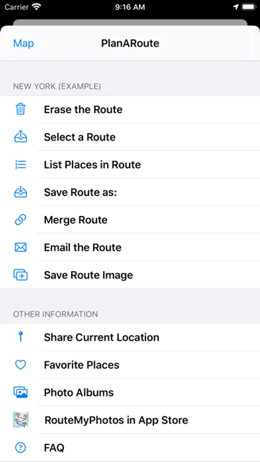 Included are two example tour routes (New York and Central Park) which demonstrate the features of PlanARoute. No need to learn complex software. View and play with these example tours to learn how to use this app and use them as a model on how to create your own routes.