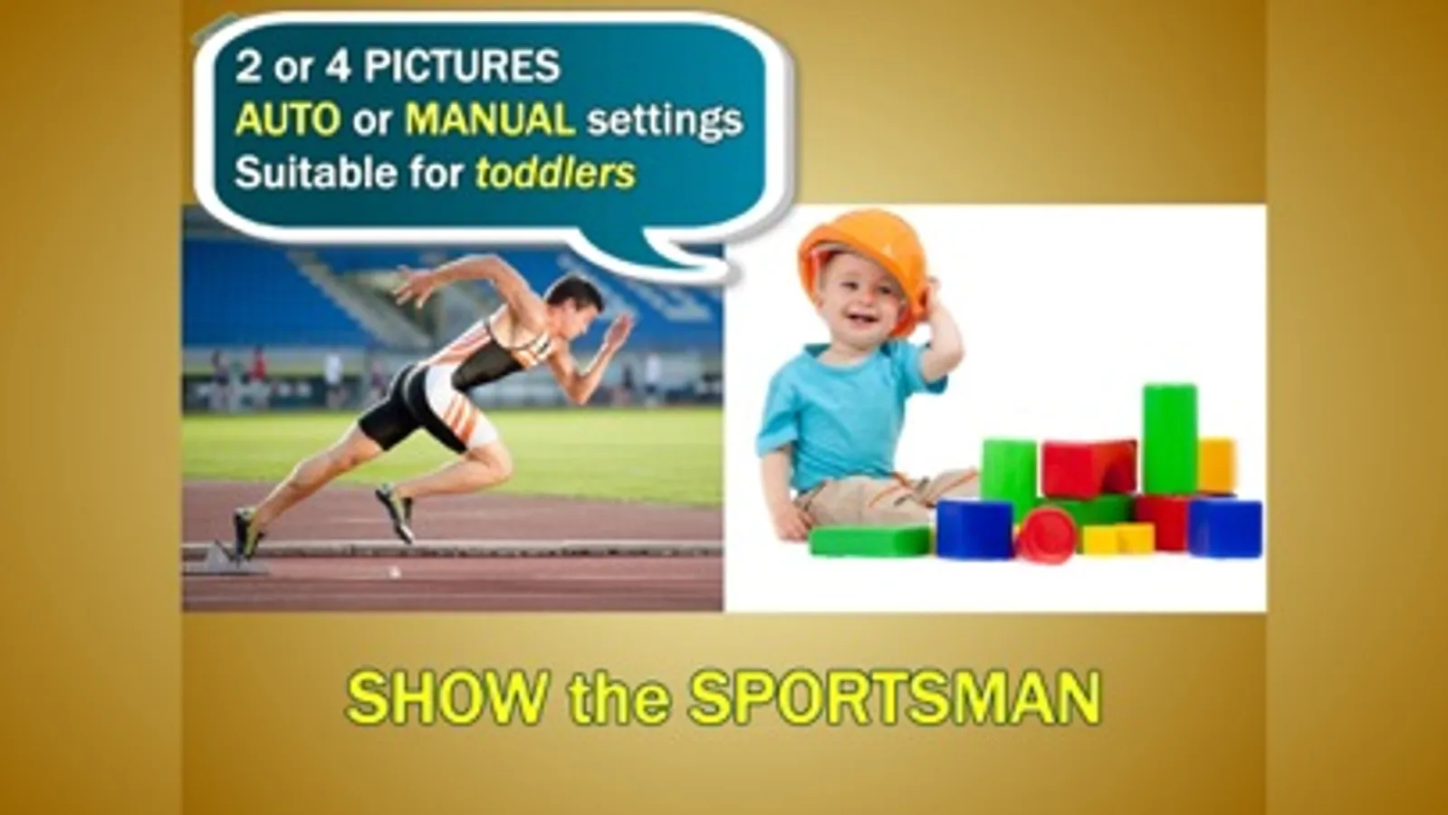 Pleasant voiceover will accompany every choice your child makes. Guess words within 7 interesting topics or between different topics! AUTO or MANUAL settings depending on your child's preference.