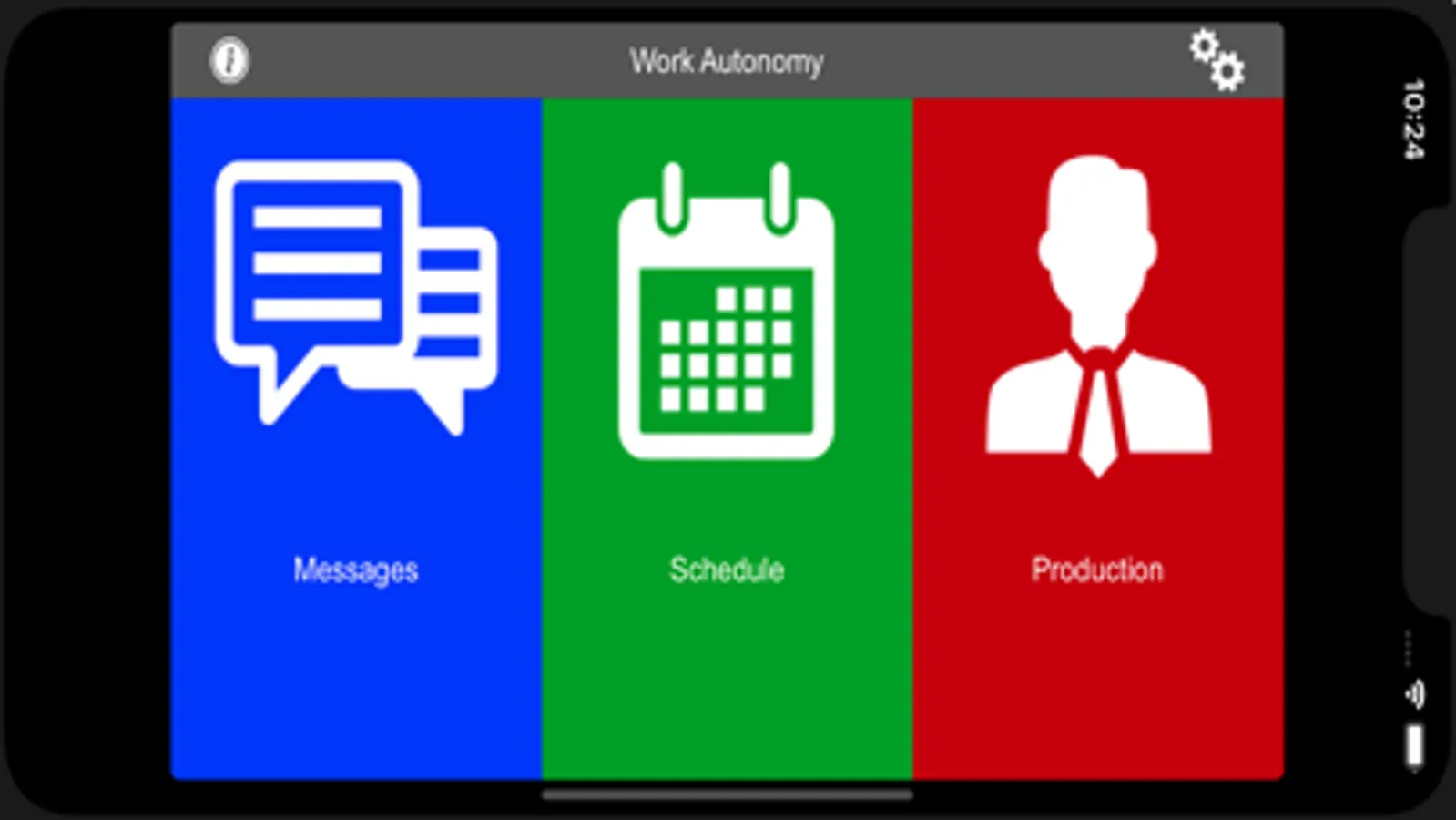 The design is focused on access for the user with a disability to program and track concrete information about their work life. All or any of three sections can be turned on and programmed for use: Messages, Schedules and Production. Sections allow for the capture of content using video, photo, text and/or voice to meet the preferences or communication and processing needs of the user.