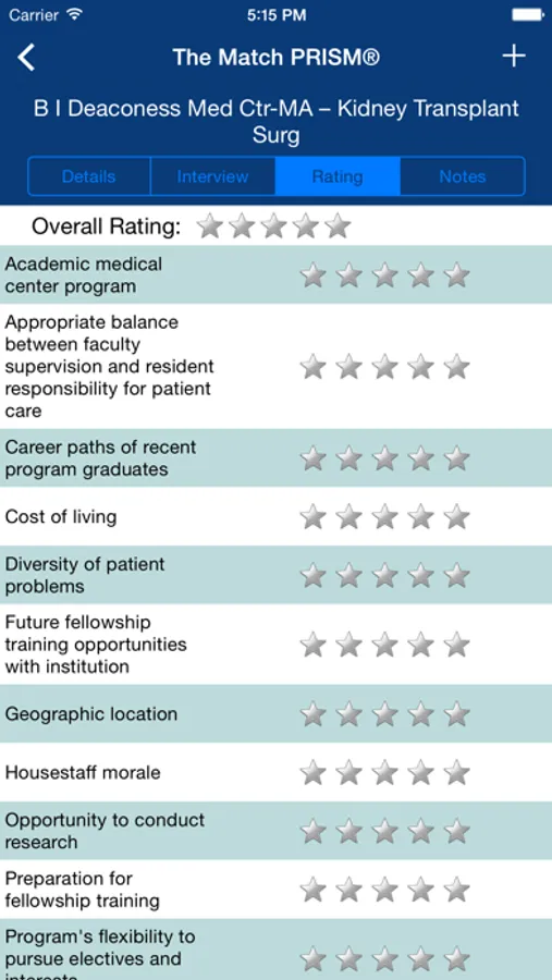 The MATCH® Program Rating and Interview Scheduling Manager, or The Match PRISM®, is a free downloadable tool from the National Resident Matching Program® that enables Main Residency Match ® and Specialties Matching Service® Fellowship Match applicants to track programs during the interview process and create program ratings that can be used to generate a rank order list in the NRMP’s web-based Registration, Ranking, and Results ® (R3®) system.