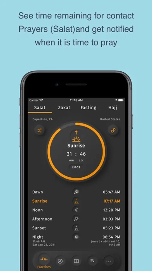 Location based accurate Prayer Times based on your current location and Current Local Time.