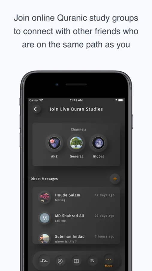Conduct online Quranic studies around the world and connect with other submitters to God alone around the world using text, audio and video call and recorded audio/video messages.
