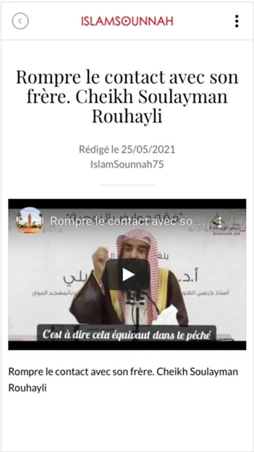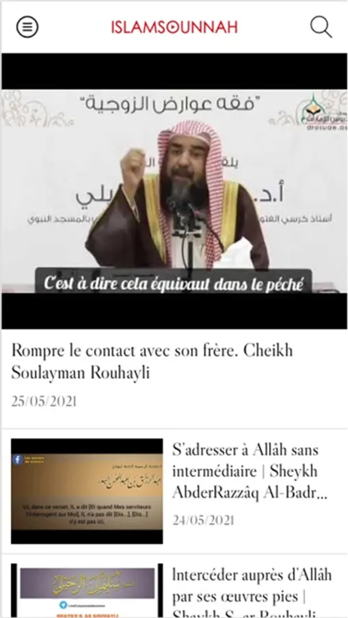 Islam Vidéo: L'application IslamSounnah contient de nombreux articles et vidéos islamique de nos grands Savants de la Sounnah traduit en langue française, la télévision en direct, les horaires de Salat (Prière), La Mecque et Médine en direct.