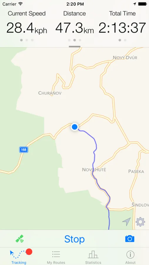 During tracking, you can view current speed, current altitude, distance so far, average speed, total time and more.