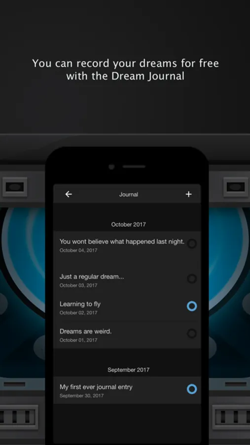 When you wake up, you can record your dreams with our free, secure, PIN-protected Dream Journal. Your entries can be written or voice recorded, can be tagged, and you can even log technique metrics.