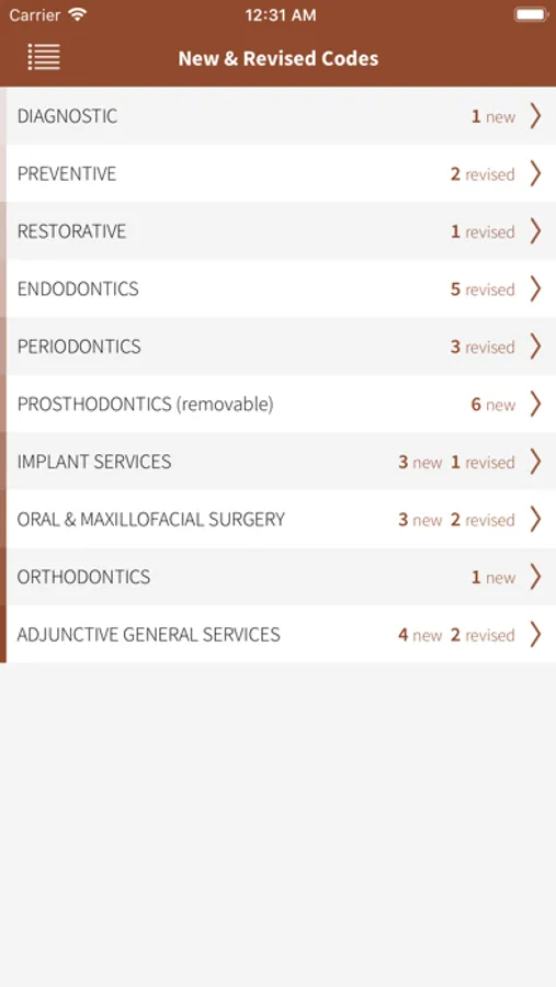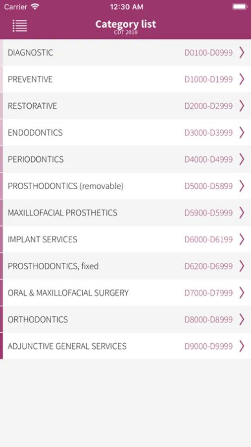 • A complete listing of 2018 and 2019 CDT Codes including category of service, subcategory, procedure code, nomenclature, and descriptor