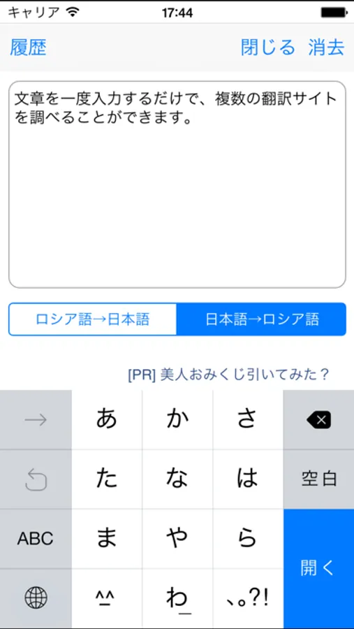 You can translate from Japanese into Russian as well as from Russian into Japanese. Use “Japanese-Russian Translator” for studying, work or even to communication with your friends overseas!