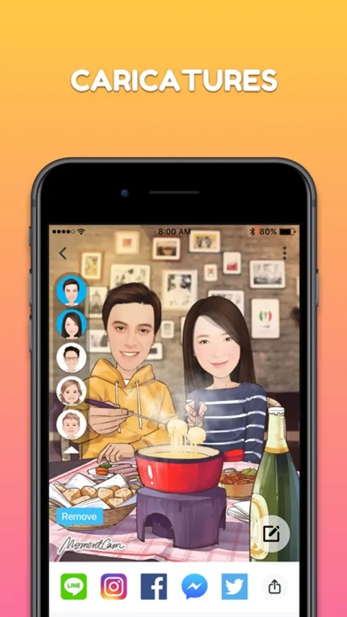 Select a picture of yourself or your friend and let MomentCam run its magic by turning it into a stylish cartoon. Add some funny features such as beards, hats, glasses and select a background to create a Momie! Simply share it with your friends across various platforms and enjoy the smiles!