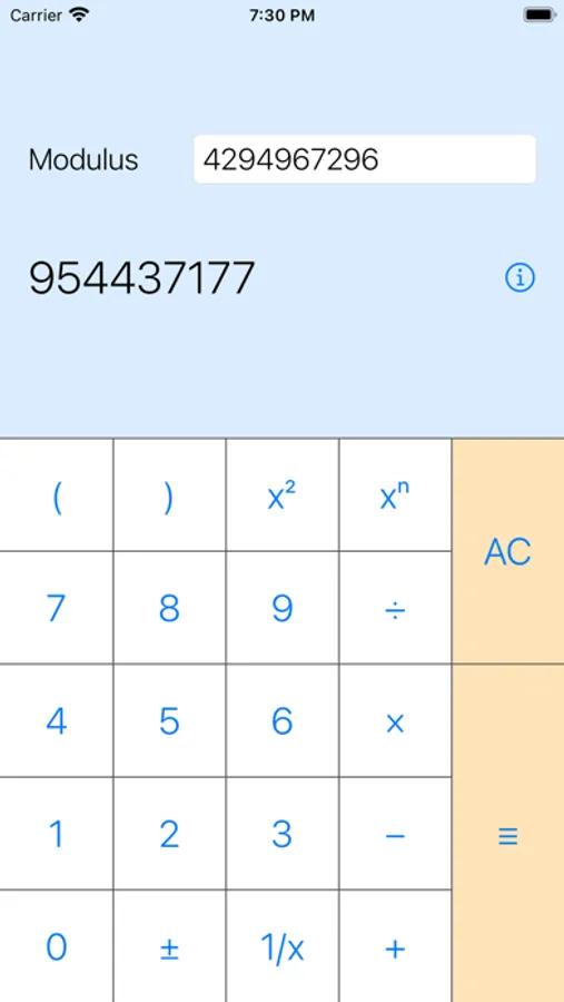 A calculator for arithmetic modulo N. It lets you choose a fixed modulus, and then make lots of calculations without having to press a "mod" button again and again. It also: