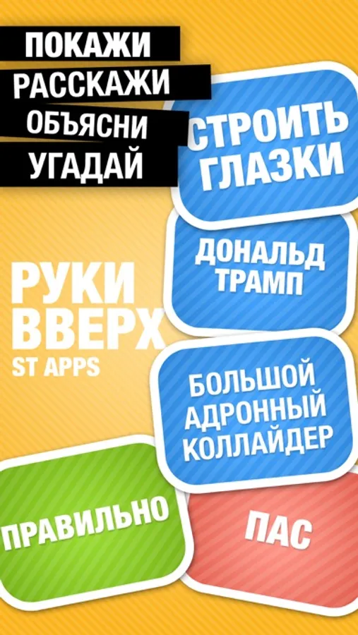 Руки Вверх! - это и шарады, и “Крокодил”, и просто веселая игра, в которую вы можете играть в компании друзей или кругу семьи.