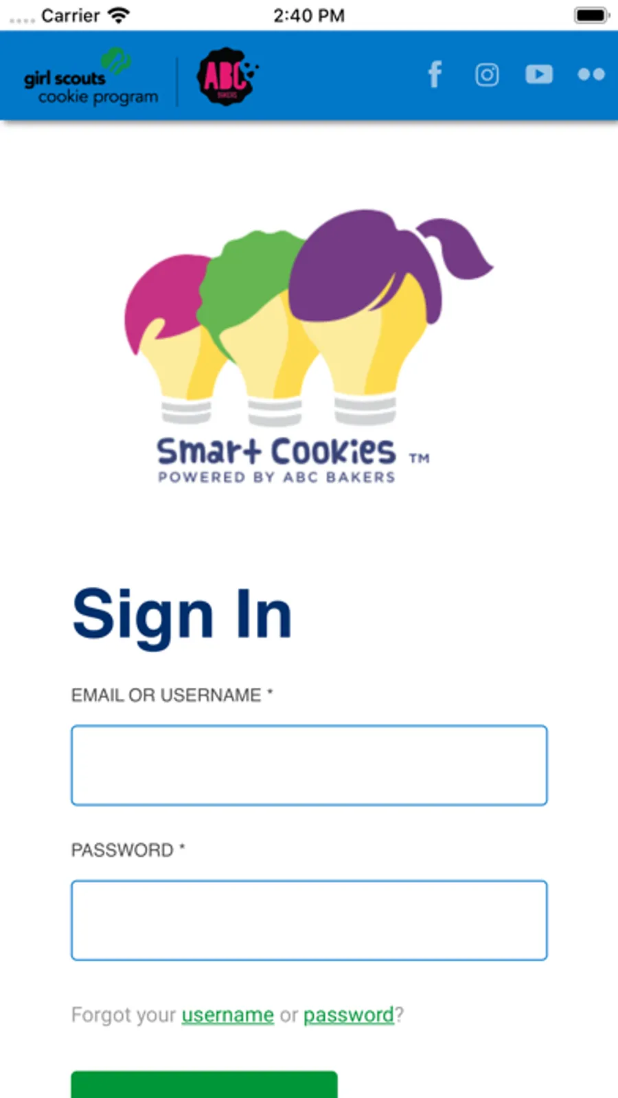 A free mobile app for girls participating in the Girl Scout Cookie Program through ABC Bakers. To use this app, Girl Scouts must have a valid username and password on Smart Cookies, available exclusively at abcsmartcookies.com.