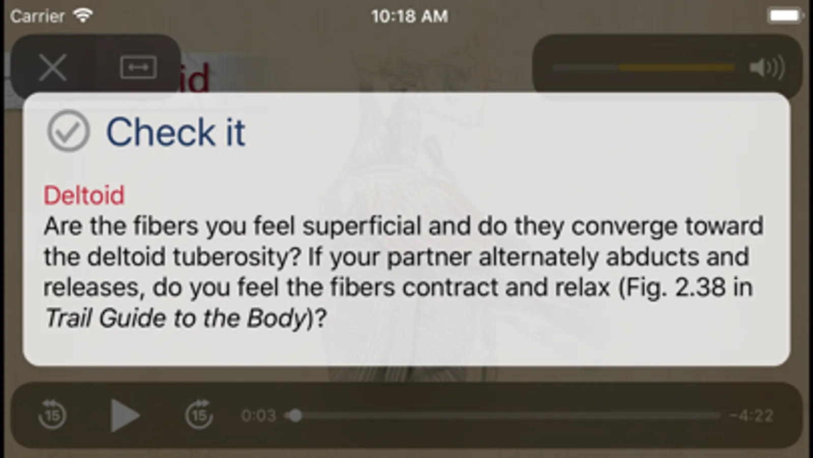 • Check-it box, for nearly every muscle, which helps the user confirm the location of the muscle being palpated