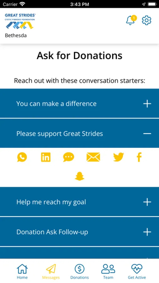 Easy-to-share fundraising messages for text, Facebook, Twitter, LinkedIn, Snapchat and email