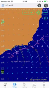 Weather routing calculation up to 144h, with land collision detection. This finds the optimized route to destination considering the wind forecasts and performance of the boat.