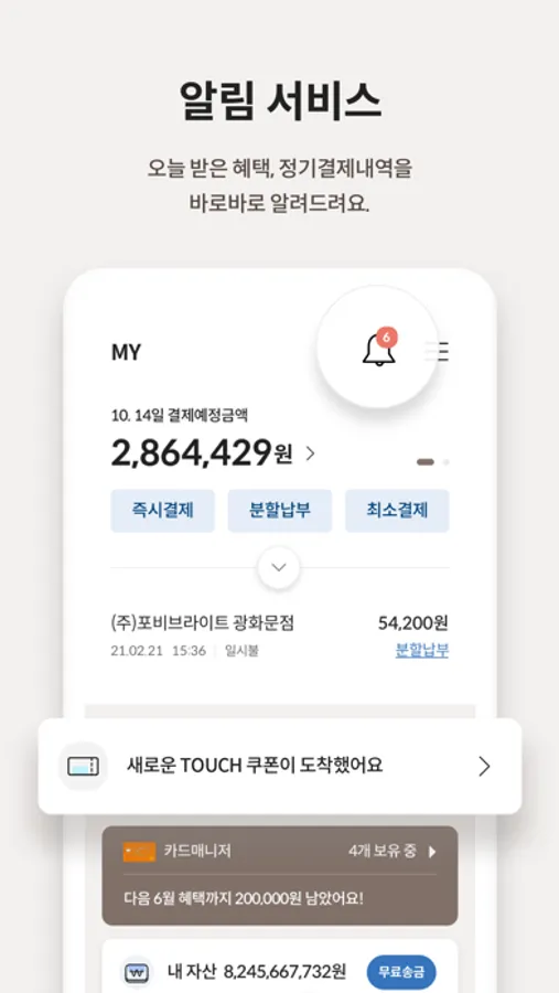 오늘 받은 혜택, 정기결제내역은 바로바로 알려 드림!