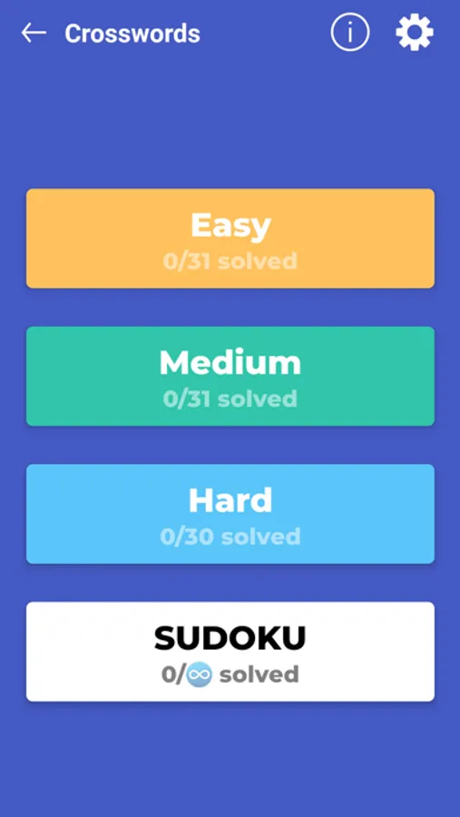 We are also proud to offer Sudoku in our Daily Themed Crossword app! You can choose from 4 different difficulty levels to match your skill and mood. To maintain our identity as a "crossword puzzle app," we’ve placed the Sudoku puzzles under each language section alongside the crosswords.