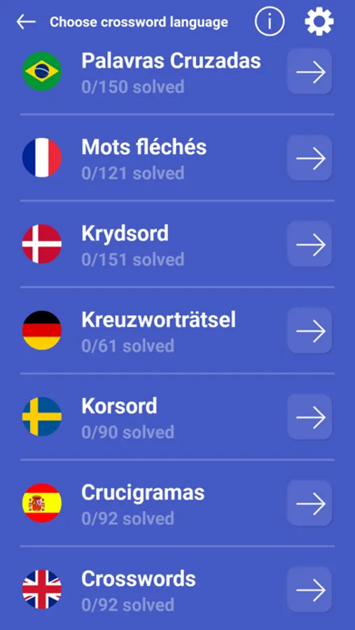 - Daily crosswords in English, Spanish, German, Portuguese, and more!