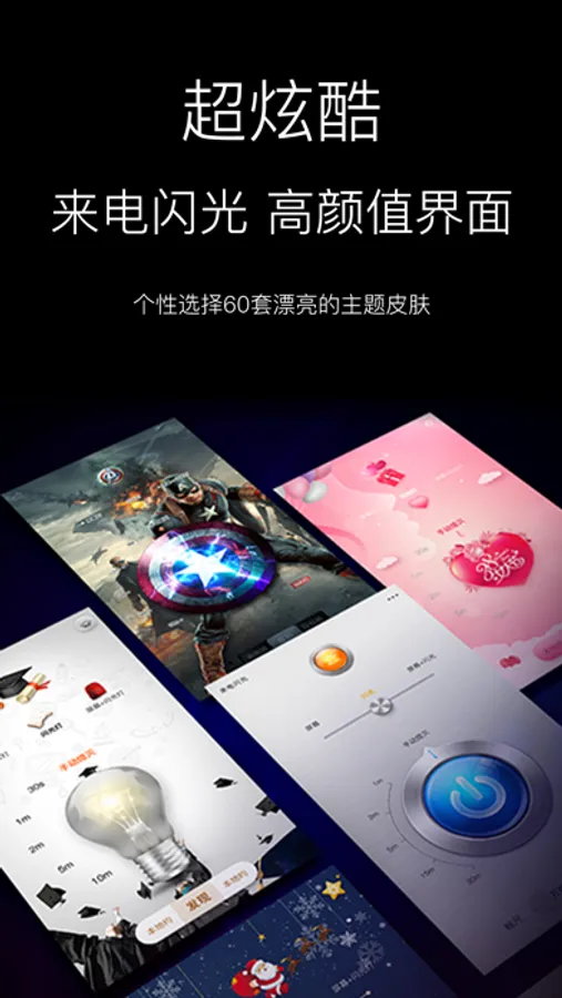 3.设计精美。是第一款根据平面风格设计的手电应用,百种主题皮肤任选,是您最骄傲的小伙伴;