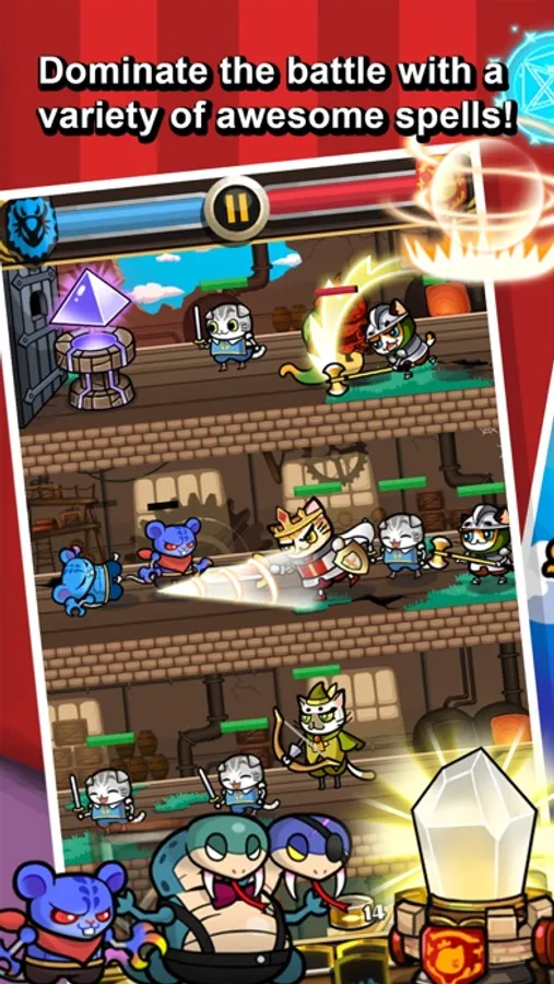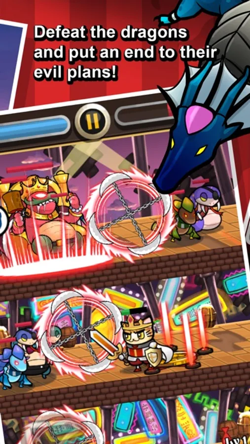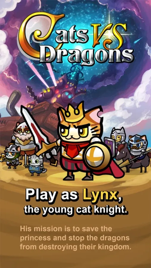Aid the hero Lynx in his quest to save the princess! Follow him through the dragons' tower. Fight evil creatures throughout the tower's 240 floors using powerful skills. Save the nine missing crystal bearers and they will aid Lynx in his quest. Summon your powerful allies to help you against your toughest foes. Pick up precious Cat Coins found throughout the tower and spend them to improve your party's abilities, and prepare you for the fight against the evil Dragon King.