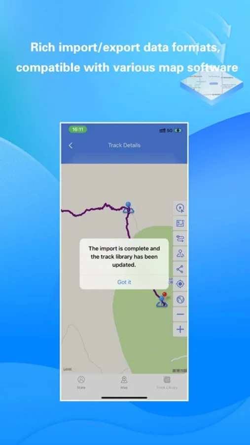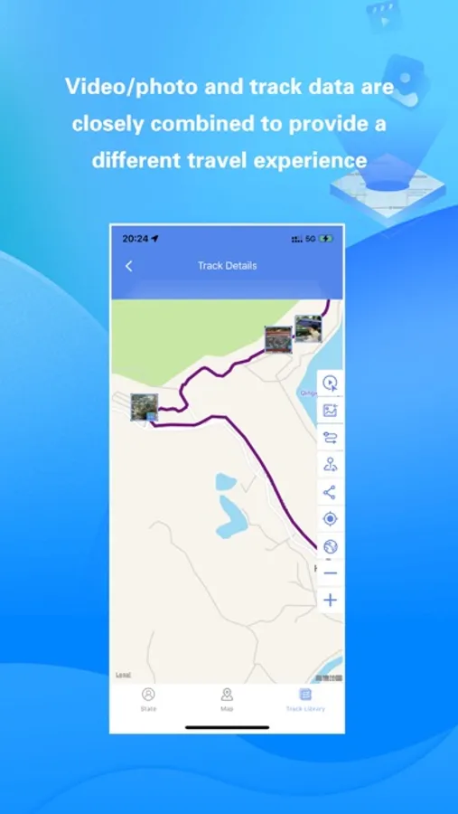 You can include videos, photos and voices in the mobile phone album into the track data, and share with other friends with one click. Your friends can enjoy your shared videos and photos on the map simply by importing the track files you shared into "Share Track".
