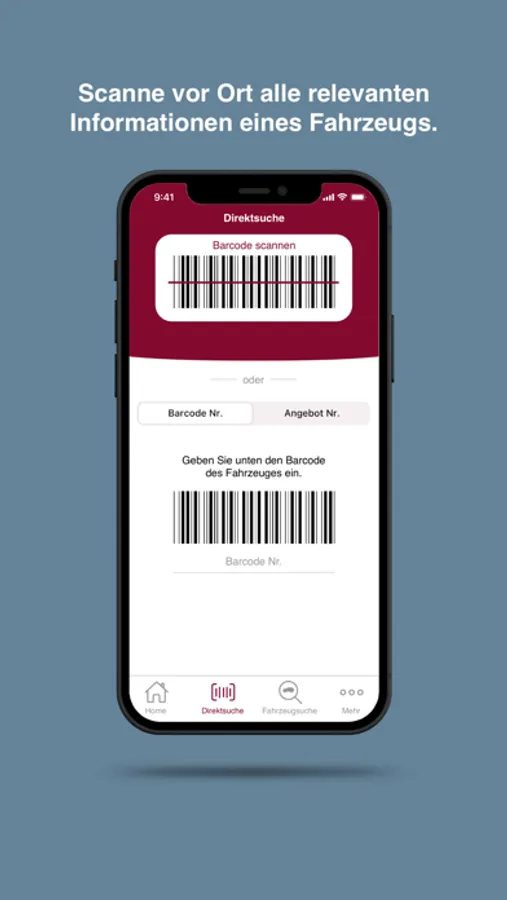 Zudem bietet Ihnen die App einen attraktiven Vor-Ort-Service. Per Scann-Funktion können Sie auf dem Gelände der AE, über den am Fahrzeug angebrachten Barcode, alle relevanten Fahrzeuginformationen abrufen.