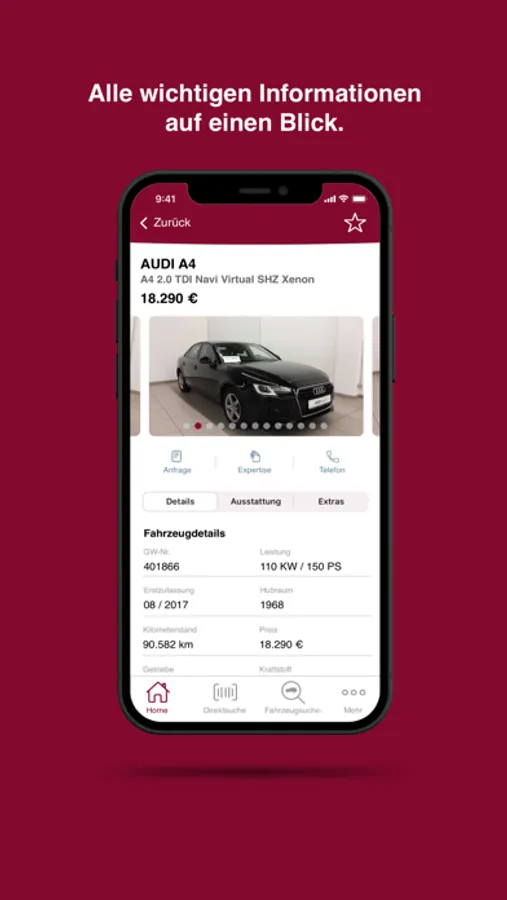 Legen Sie einfach Ihre Suchkriterien fest und gelangen so auf schnellstem Weg zu Ihrem Wunschauto. Die App unterstützt Sie bei Ihrer direkten Kontaktaufnahme mit Ihrem Ansprechpartner bei der autoexpo via E-Mail oder Telefon.