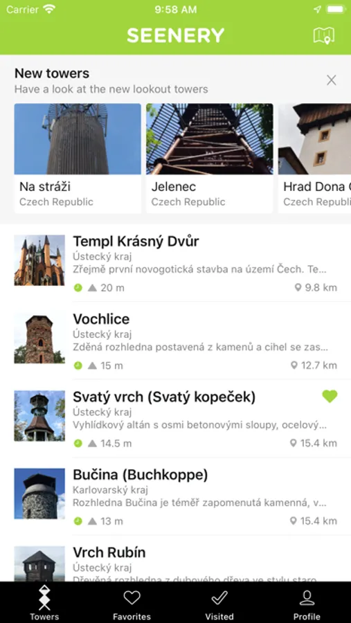 Do you like to travel and enjoy the high places but not really sure where to go? Just fire up Seenery and you'll have instant access to all the lookout towers near you.