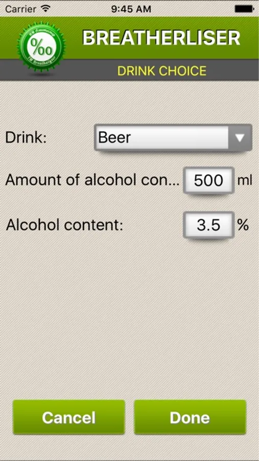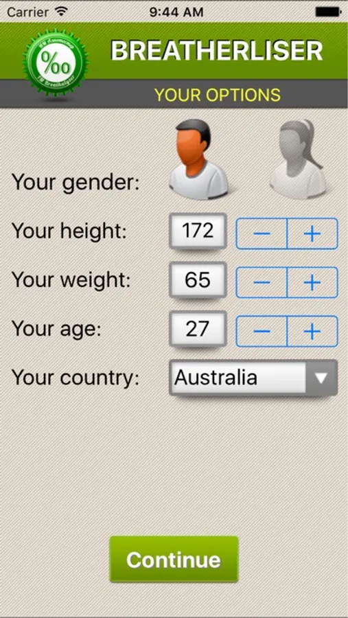 Unlike the real Breathalyzers, our application does not provide reliable results for the concentration of alcohol in blood. After entering the specific parameters of a person (gender, height, weight, age and amount and type of probable drink), you can estimate a would-be period after which somebody’s BAC results could be considered as acceptable or not for driving in a certain country.