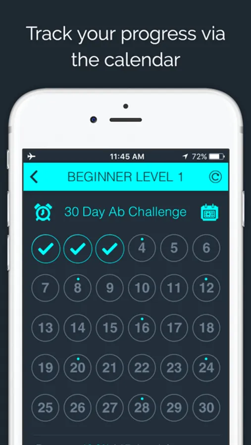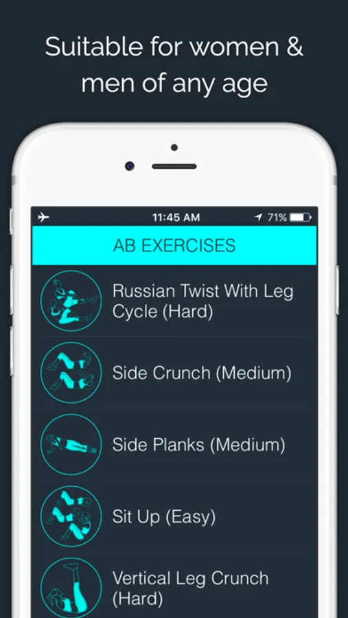 The 30 Day Ab Challenge is a simple 30 day exercise plan, where you do a set number of ab exercises each day with rest days thrown in! The workout increases intensity slowly and day 30 will test anyone. In total the app has 6 workouts with 15 ab exercise variations. The workouts and exercises are suitable for both men and women of any age and fitness levels.