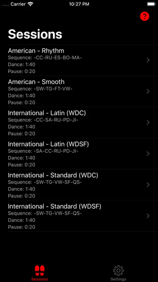 - 6 pre-defined sessions (Standard WDSF/WDC, Latin WDSF/WDC, Smooth and Rhythm)
