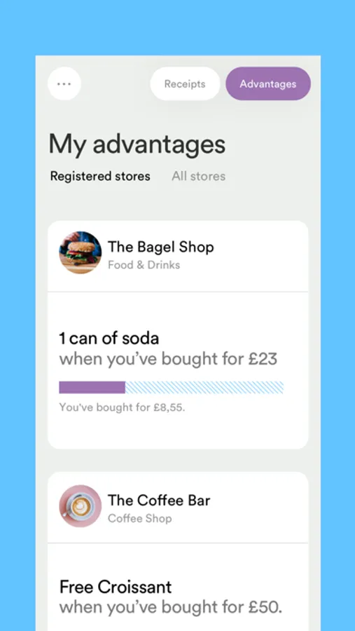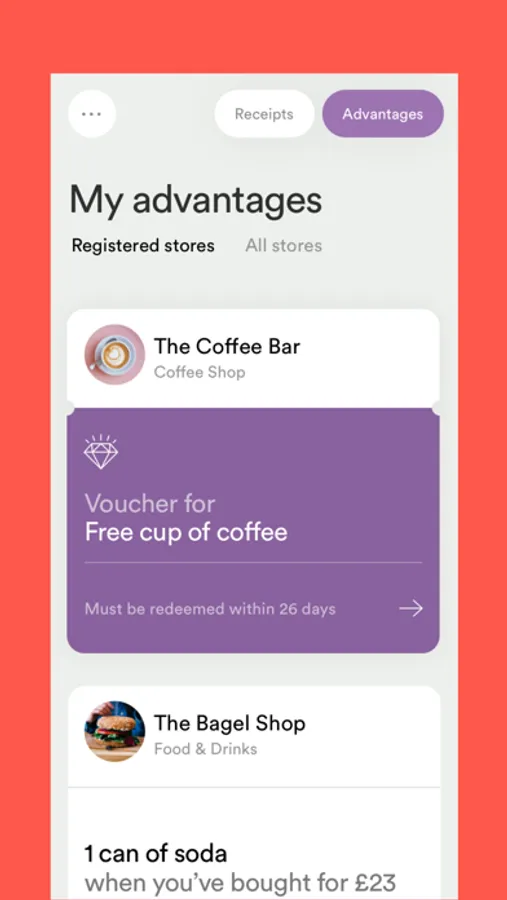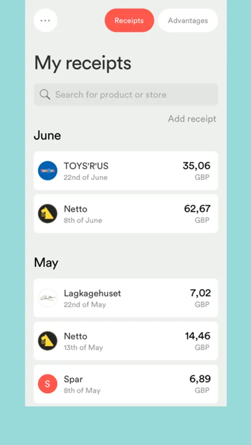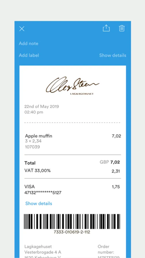 With the Storebox app keeping all your receipts in order is easy. Register your payment cards on www.storebox.com or directly in the app and you're ready to use the service. You will automatically receive digital receipts for the purchases you make with your payment cards in the many stores that have signed up to Storebox.
