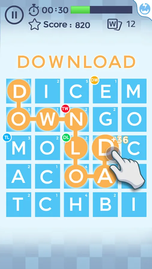 Swipe your finger in any direction to create words from the jumbled puzzle. Find the best words on the board to earn trophies and high scores!