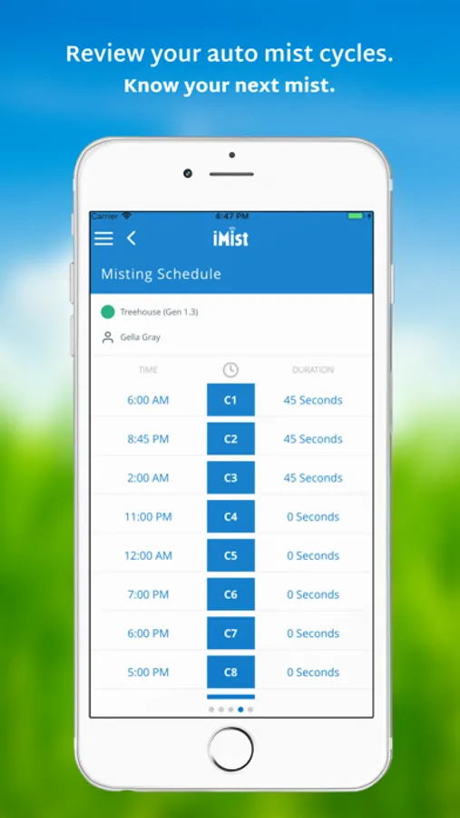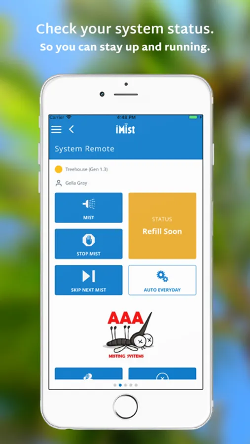 The app allows MistAway’s customers to see their system’s status or remotely trigger or stop a mist from their smartphone, wherever they are connected to the internet. The app also enables MistAway’s dealers to provide a superior level of service by giving them complete remote visibility into the operations of their customers’ misting systems.