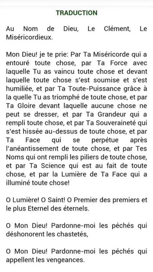 C'est une adaptation française de la très populaire application « Divine Pearls » (en Anglais) de Al Hajj Ejaz Hussein Z. Ajani.