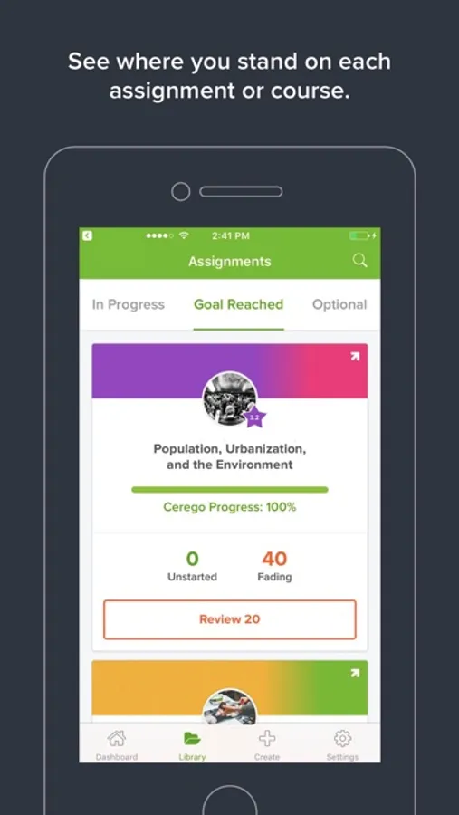 Cerego mobile is a convenient and easy way to stay on top of your courses and assignments. When you sign into your Cerego account the app will automatically sync all of your course content and display your progress with the material.