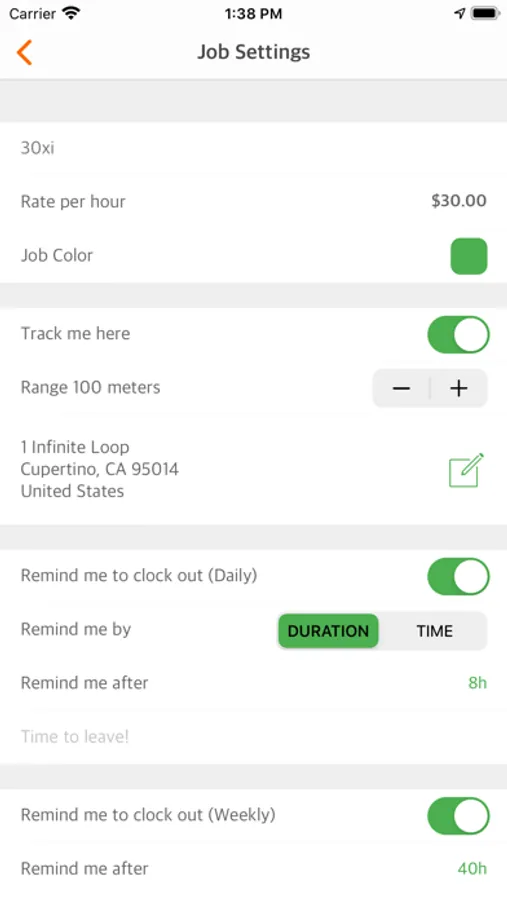 Configurable notifications when you clock in and clock out of a location. Let Easy Hours free you up from having to constantly track your time in spreadsheets or notes. Notifications will provide you with the confidence that your time is being tracked with precision.