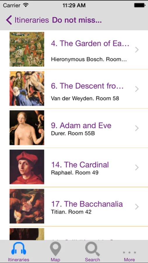 The multimedia guide with more artworks explanations. It includes the following 52 masters pieces.