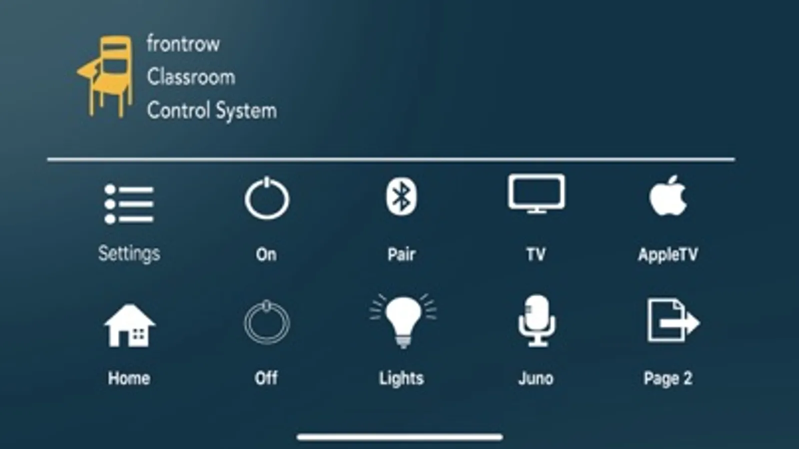 frontrow Control for iOS works in conjunction with the FrontRow CB6000 wall control panel to allow users to effectively manage and control classroom AV technology from Apple® iPad and iPhone touch devices. Turn on projectors, change inputs, call the office via FrontRow Conductor, or anything the CB6000 can be programmed to do while anywhere on the school wireless network.