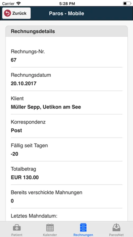 Paros ist ein Verwaltungs- und Administrationstool, das speziell für Therapeuten entwickelt wurde. Mit Paros verwalten Sie Ihre Patienten, führen Krankheitsgeschichte, erfassen die Arbeitszeit und rechnen Ihre Leistungen ab. Sie profitieren als Therapeut von vorkonfigurierten Leistungssätzen für verschiedene Bereiche (Heilpraktik, Cranio-Sakral, Massage, Traditionelle Chinesische Medizin etc.). Einmal eingerichtet, erzeugen Sie einfach und bequem per Knopfdruck Ihre Rechnungen. Auch Massenrechnungen via ESR für grössere Praxen sind mit Paros einfach zu erstellen. Darüber hinaus beinhaltet das Tool eine Nachrichten- und Terminfunktion sowie die Eröffnung von multiplen Accounts für weitere Therapeuten in Gemeinschaftspraxen. Die im nachfolgenden Text beschriebene App ist ein Teil des Gesamtangebots von Paros. Bitte beachten Sie, dass nicht alle Funktionen des Verwaltungstools mobil genutzt werden können.