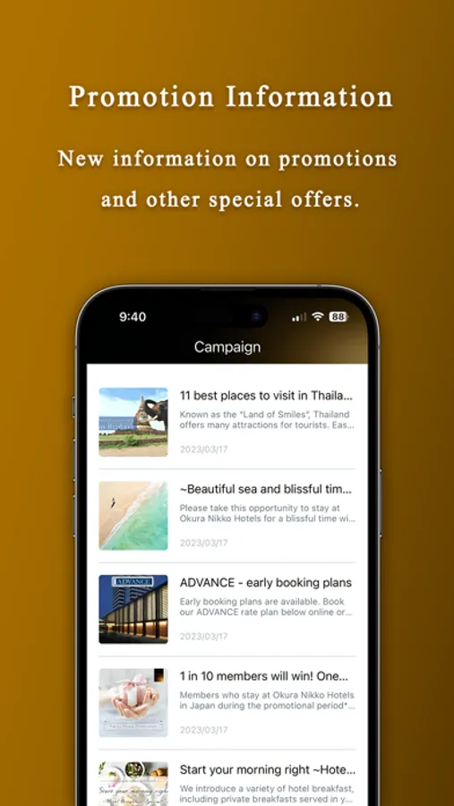 ・Receiving notifications about the promotions, accommodation plans, and other special offers from each hotel.