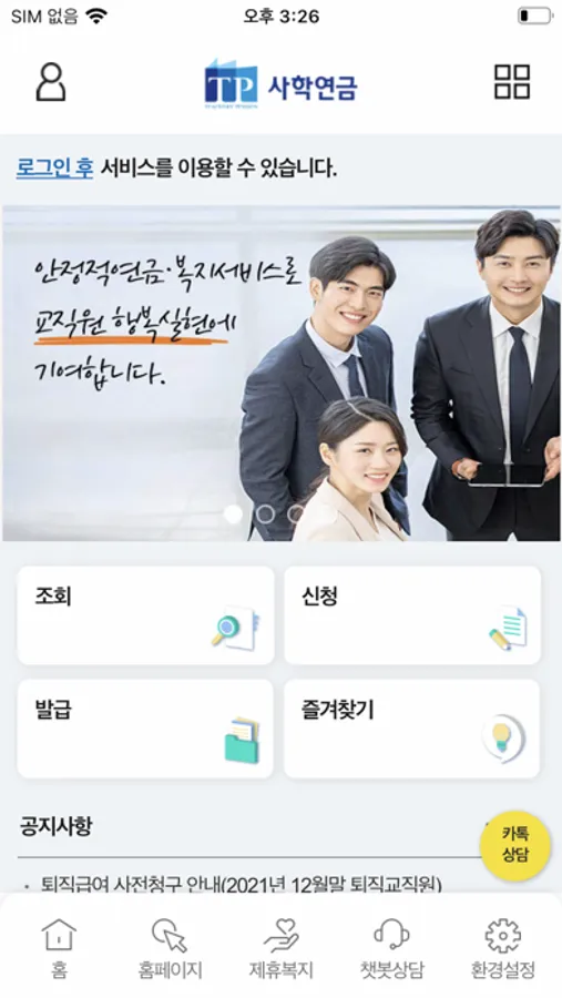 각종 연금정보, 제휴복지, 카카오톡 상담 등을