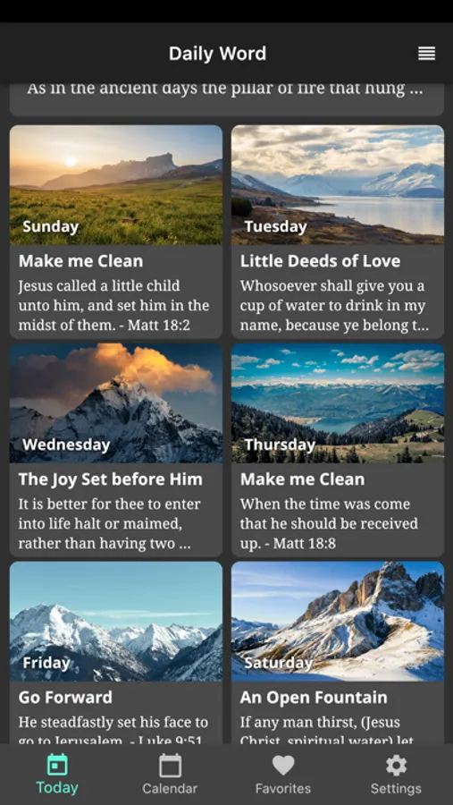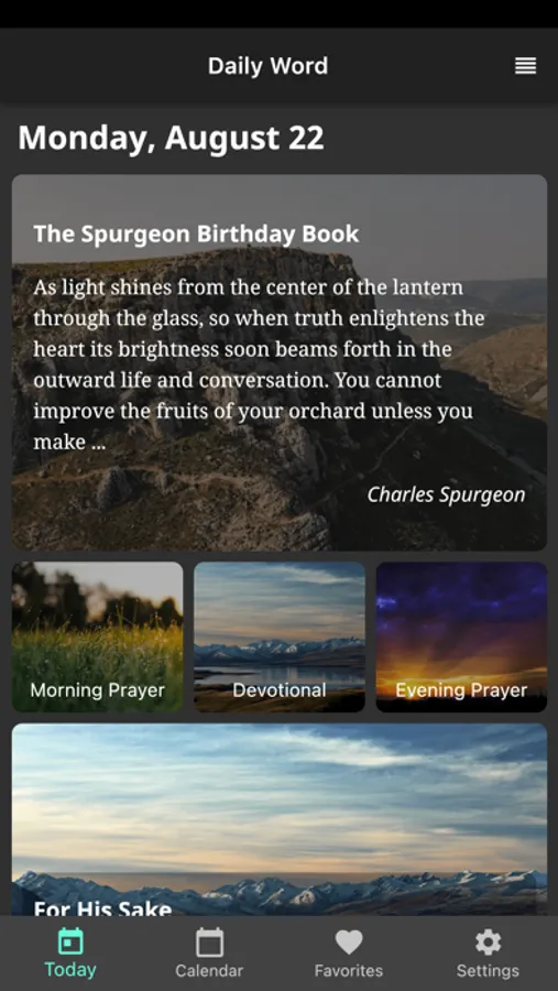 A 366 days devotional app based on the timeless classic devotional book Come Ye Apart by J.R. Miller updated with digital features for today's smartphones and tablets. Be encouraged as you read the bible and pray daily using this daily devotional app.