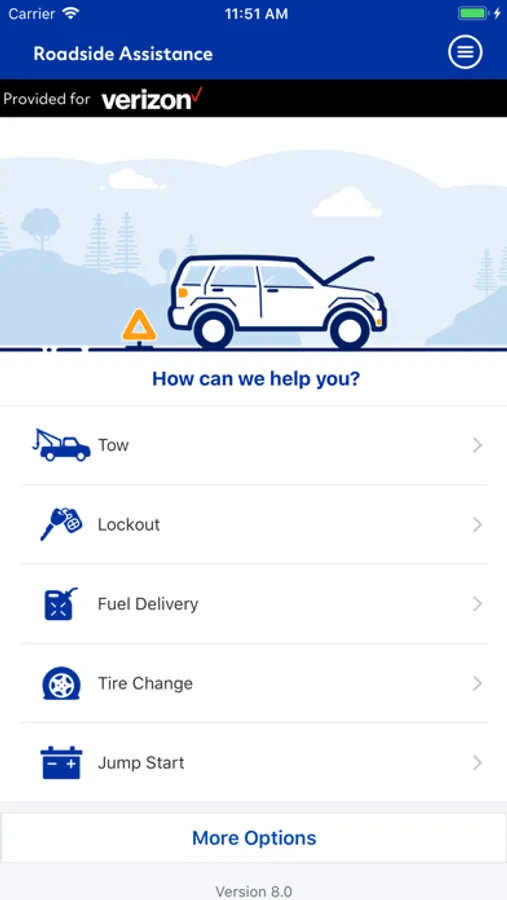 The Verizon Roadside Assistance mobile application has been carefully designed to make requesting assistance faster, more accurate, and convenient.