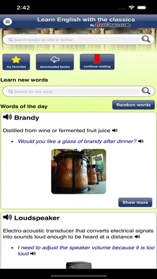 + Audiobooks - Improve the listening skills and learn vocabulary +