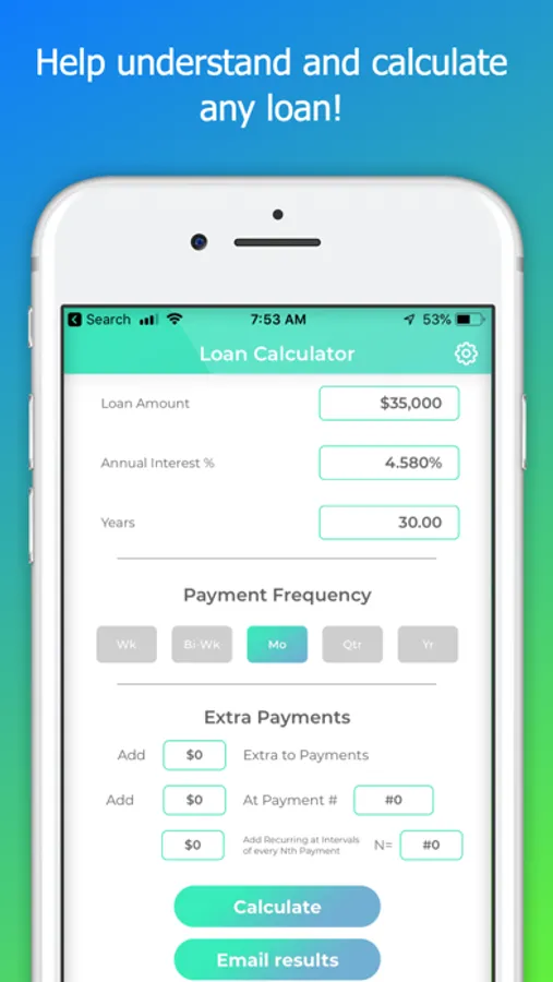 • Loan Calculator Professional allows you to input extra payments, and a whole bunch of other options to give you the most comprehensive loan calculation