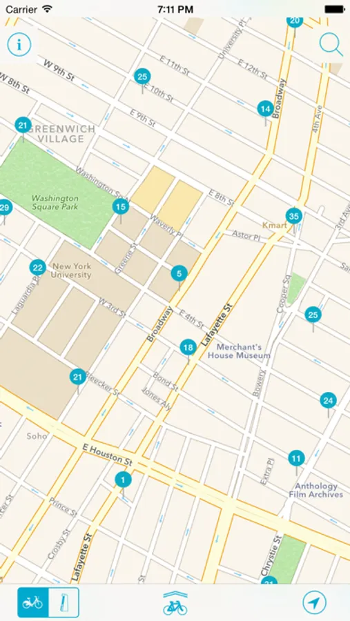 Don't worry, Bike NYC's got your back. It's one thing, and one thing only: a map that lists every Citi Bike station. We include up-to-the-minute information about how many bikes and docks each station has right there on the map itself. We even have data that's fresher and more accurate than the official Citi Bike app. And of course everything's blazing fast and responsive, since ultimately we just want to get you out of our app and onto your bike as quickly as possible.