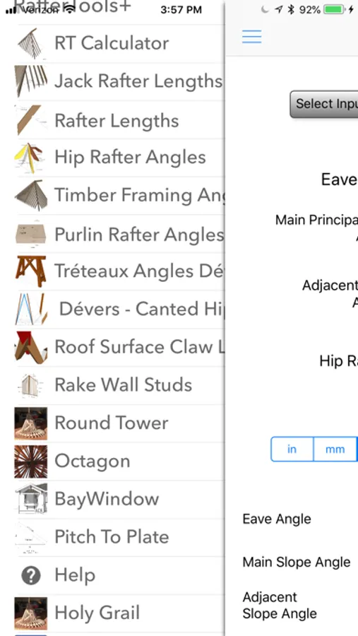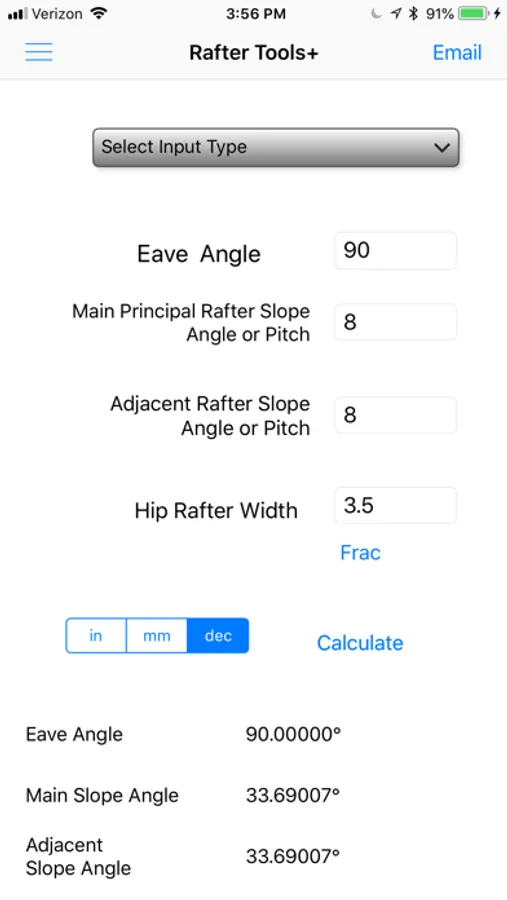 Rafter Tools+ for iPhone-iPad is a rafter calculator for complex roof framing angles that other roof framing calculators don't offer. Calculating common rafters with a construction calculator is fairly easy, but to be a master carpenter you need more roof framing angle information then the construction calculators offers. With the Rafter Tools-Plus app, you'll be able to calculate all of the complex angles for roof framing.