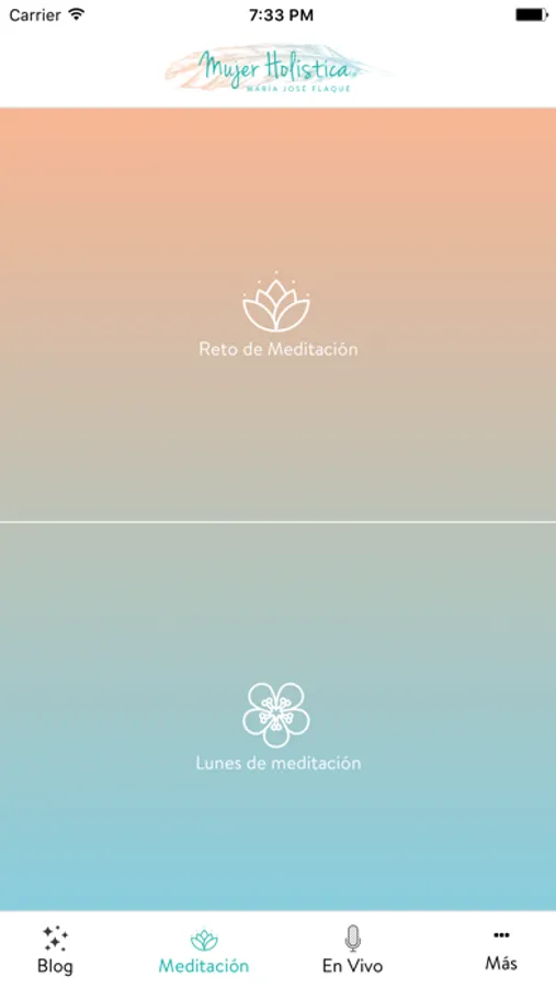 También encontrarás el "Reto de Meditación" y la radio con "Audios en vivo de María José Flaqué" que son exclusivos de esta App.