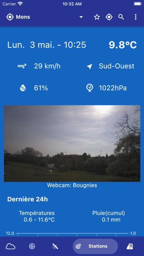 Les relevés de nos stations météo en temps réel ainsi que nos webcams pour la Belgique